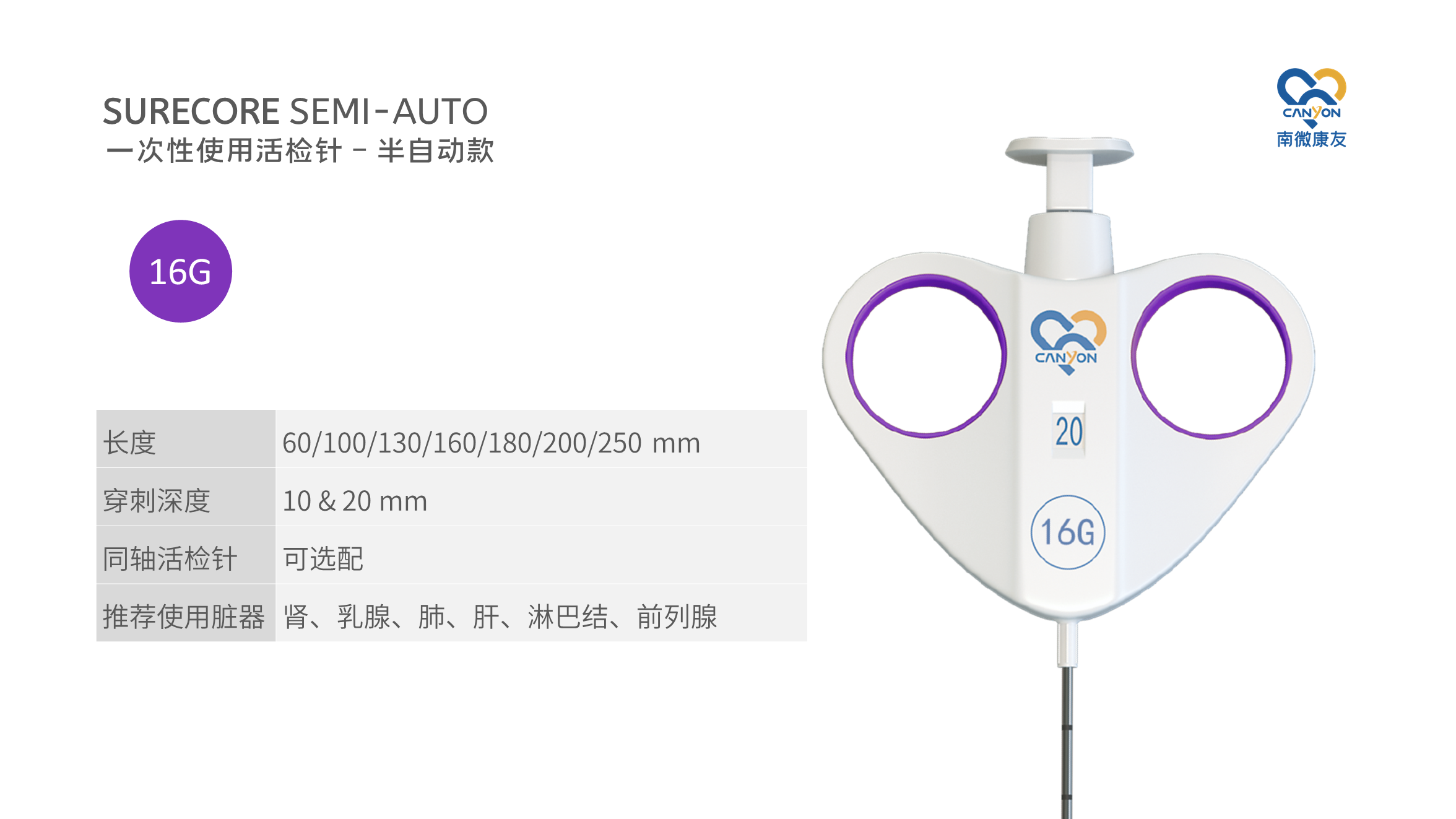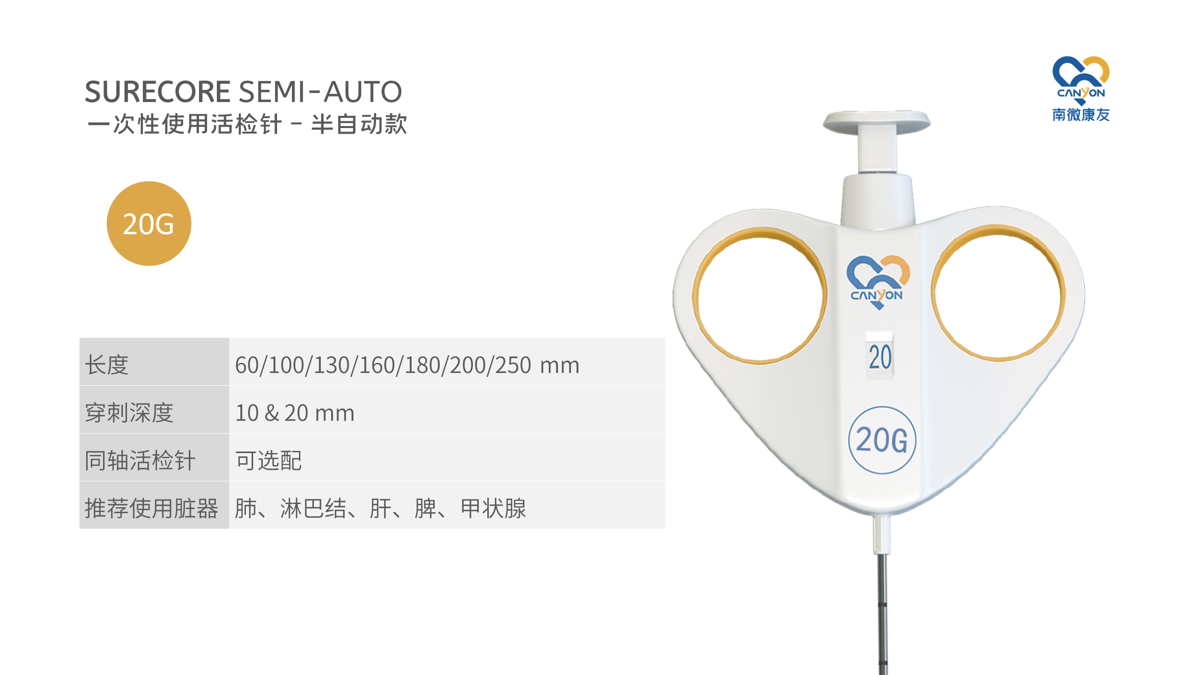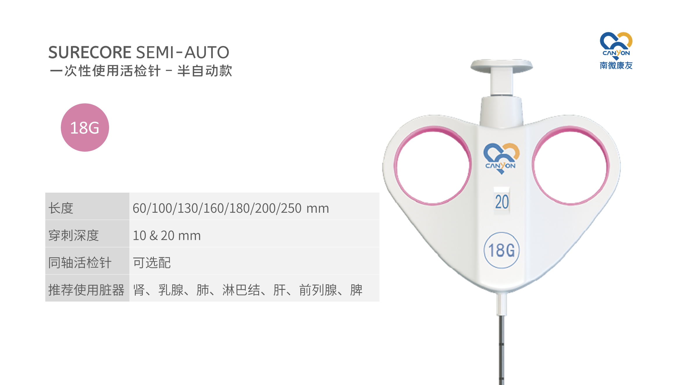 SURECORE? 一次性使用活檢針 - 半自動款
